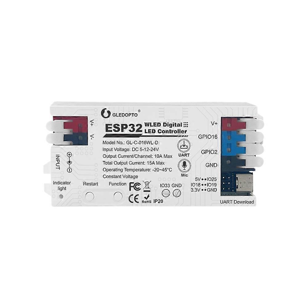 GLEDOPTO ESP32 WLED LED Controller with Microphone, Music Sync Supports WS2811/WS2812/WS2813/WS2815 Strip Lights White