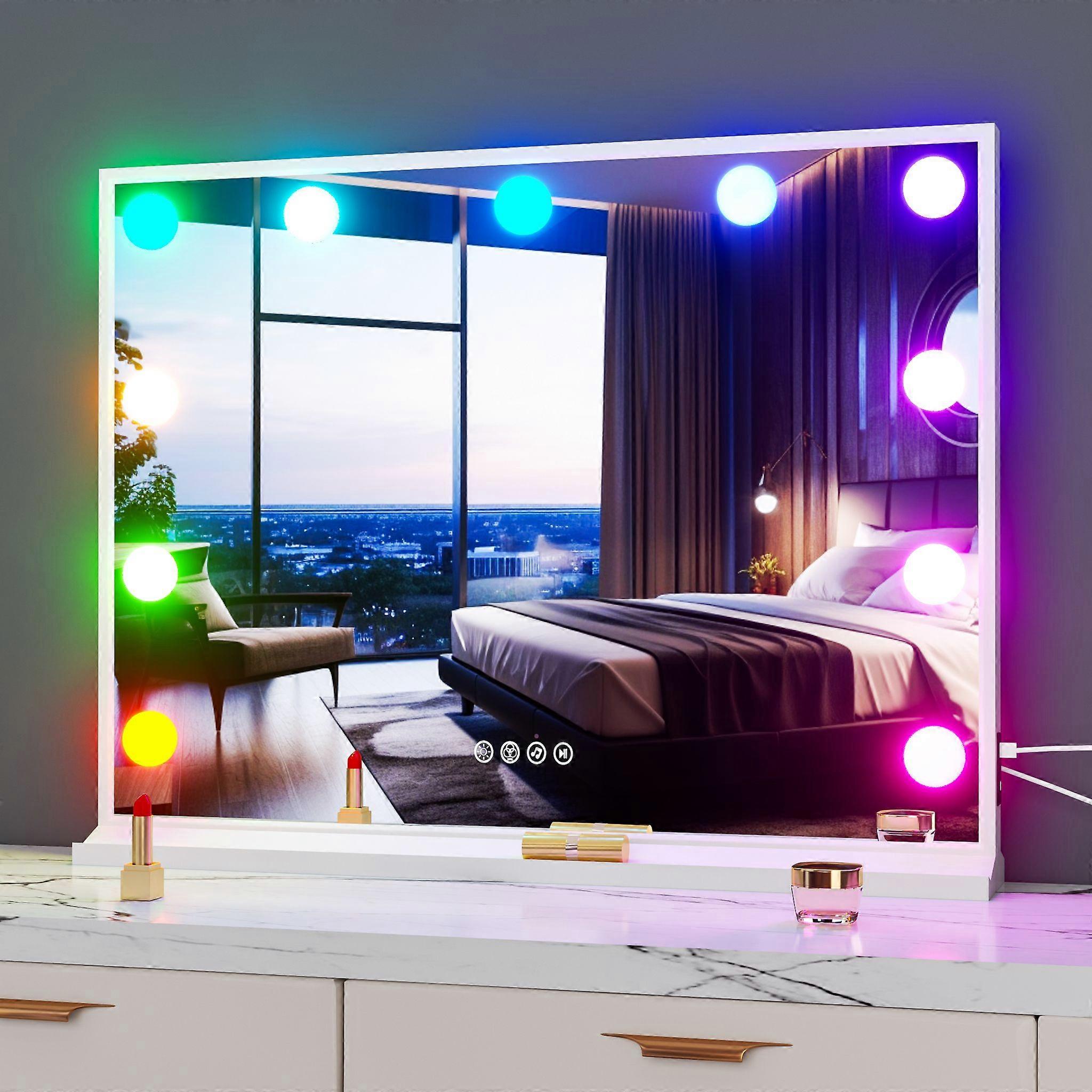 Large Aluminum Hollywood Light Up Mirror Bluetooth Speakers Vanity Mirror