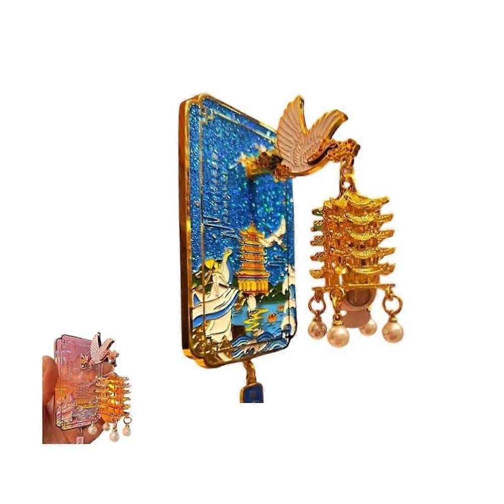 Yellow Crane Tower Luminous Lantern Refrigerator Magnet, 3D Resin Landmark