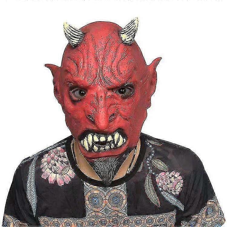 Halloween Horror Ghost Face Monster Mask Show Party Show Scary Red Devil Horn Mask Bar Props