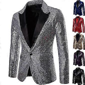 Homme Sequin Suit Jacket Blazer One Button Luxury Party Dinner Prom Tuxedo