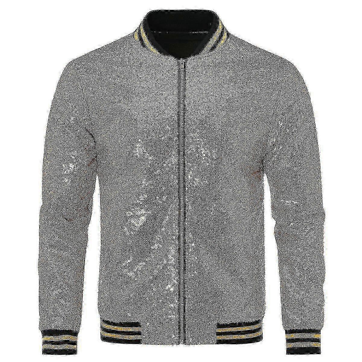 Mens Sequins Casual Zipper Bomber Jacket M Gold