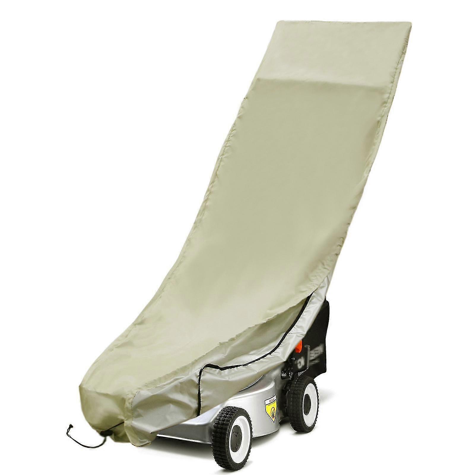 Lawn Mower Cover with Waterproof Coating Sun Shade Protective Cover Tear-Resistant UV Resistant Furniture Sunbed Cover with Drawstring Beige This chair cover is made of oxford cloth, and waterproof coating, suitable for preventing the water from the mower on a rainy day. The swing cover is easy to use and clean. The smooth material of the lawnmower cover makes it easy to clean, just rinse with water, then dry with a dry towel.Features:[Durable]Durable UV blocking cover & water, fade, and stain resistance. Lightweight, easy to carry, and foldable.[Drawstring]There are long tight drawstrings along the sides, no need to worry about the cover being blown away by the wind. Even in a harsh environment, your furniture can be safe, clean, and dry.[High-quality]Made of high-quality 210D oxford cloth, durable, and environmentally friendly for long time use.[Good Replacement]This mower cover is perfect for replacing any old, worn-out covers or to keep as a spare.[Useful]Heavy-duty strength and durability will give your mower many years of protection.Specifications:Color: Black; Beige (Optional)Material: 210D Oxford ClothWaterproof Coating: YesStyle: CasualApplication: Lounge Chair, MowerOccasion: Home, Garden, OutdoorItem Size: 25*39*74cm / 9.84*15.35*29.13inchPackage Size: 32*12*4cm / 12.59*4.72*1.57inchPackage Weight: 230g / 0.5lbPackage List:1 * Mower Cover
