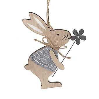 Heaven Sends Wooden Rabbit with Flower Easter Decoration