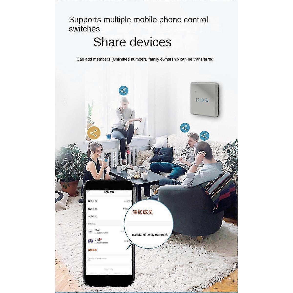 Touch Light Switch Single Zero Fire Line 2 Switch Grey