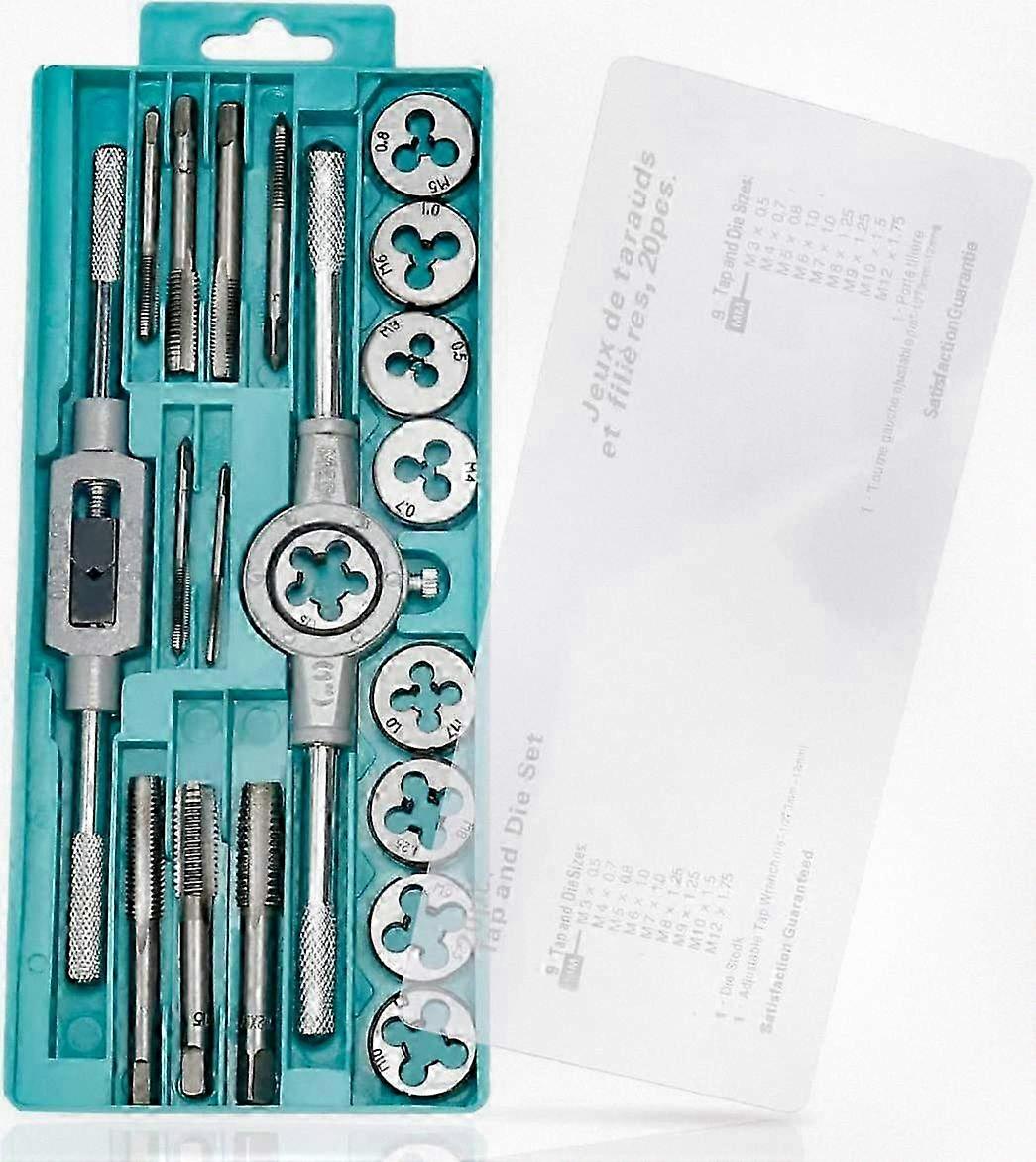 20-Piece Metric Tap and Die Set for Various Sizes - M3 to M12 Thread Taps and Dies with Wrench Handle and Storage Box Ideal for Use with Com
