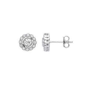 Jewelco London Ladies Rhodium Plated Sterling Silver CZ Scallop Edge Halo Solitaire Stud Earrings