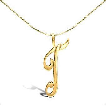 Jewelco London Solid 9ct Yellow Gold Script Identity Initial Pendant Letter T