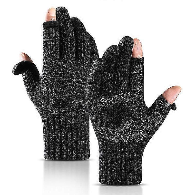 JiaWei Women Men Cycling Gloves Knitted Touch Screen Windproof Fleece Warm Open Finger AAx