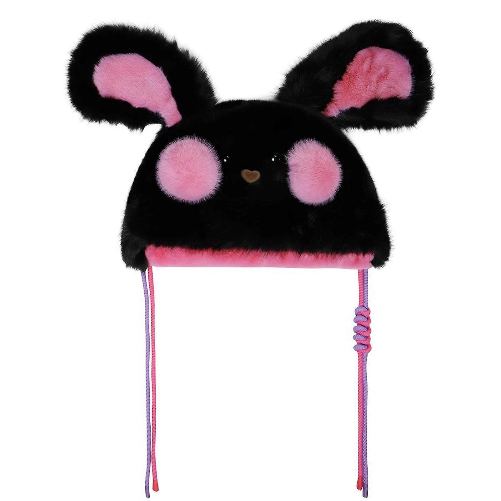 Kids Hat Head Wrap Thicken Furry Rabbits Hat for Climbing Skiing Sports Headwear White Rabbits Hat Oversized Headwear Black