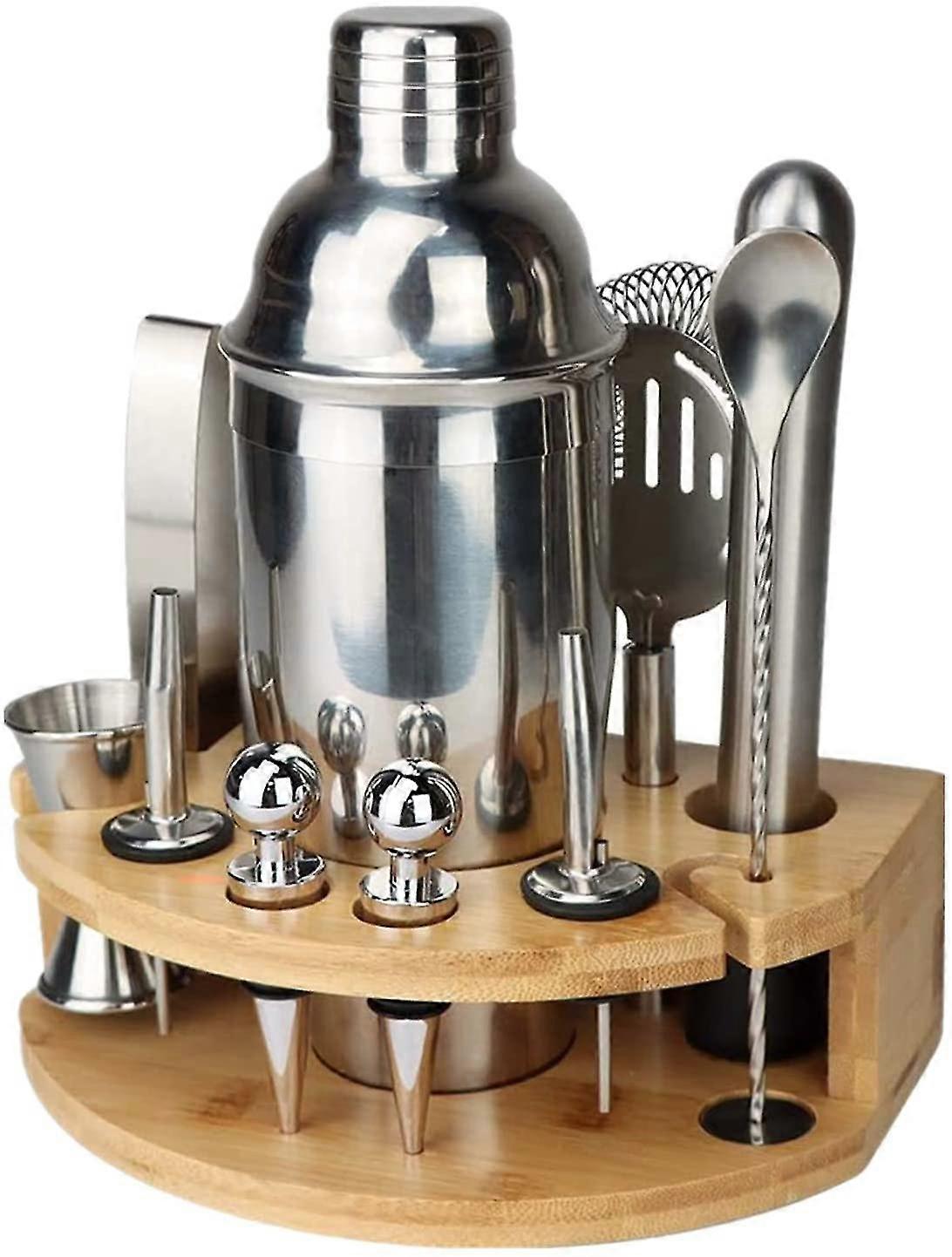 SERVE YOUR GUESTS WITH RILLIO PRO KIT ANSWERS ALL YOUR NEEDS about bar accessories . provides most essential bartending tools you need for mixing delicious cocktails without fuss or mess: 24 Oz shaker, mojito muddler, mixing spoon, jigger, Hawthorne strainer, corkscrew, 2 liquor pourers , ice tongs, 2 bottle stoppers. .DESIGN BAMBOO STAND FOR BAR TOOLS STORAGE Attracting your guests' attention has never been so easy :). Besides its stunning appearance, the environmentally-friendly bamboo holder solves the most annoying problems in home bars: ACCESSIBILITY, TOOLS LOSS & STEEL SCRATCHES. Its design features designated dents and wood partition, making it the most thick, stable and solid bar tool holder. .TOP QUALITY MATERIALS: RUSTPROOF & DISHWASHER SAFE Our products undergoes stricted inspection in the U.S. SS304 Stainless Steel Martini Shaker features a high-grade inner which does not leech harmful chemicals nor affect your beverages flavors. You can dish-wash your utensils and keep their shine with ease. .A GIFT ANYONE WOULD LOVE TO RECEIVE Wouldn't you be excited? an elegant bar tools set + a stylish wooden stand + recipes cards, all packed inside a classy gift box. Whether it's an anniversary, wedding, Christmas, Father's day or any other occasion, your recipient will be thrilled like a child in a candy store. The one present they'll remember. .100% MONEY BACK Guarantee :Not satisfied with our barthender set? No problemWe offer 100% Customer Satisfaction, GUARANTEEDYour purchase is covered by our guarantee and an extended warranty. Please simply contact us for a refund or replacement. Buy with confidence and peace of mind. Customer satisfaction is our highest priority. .