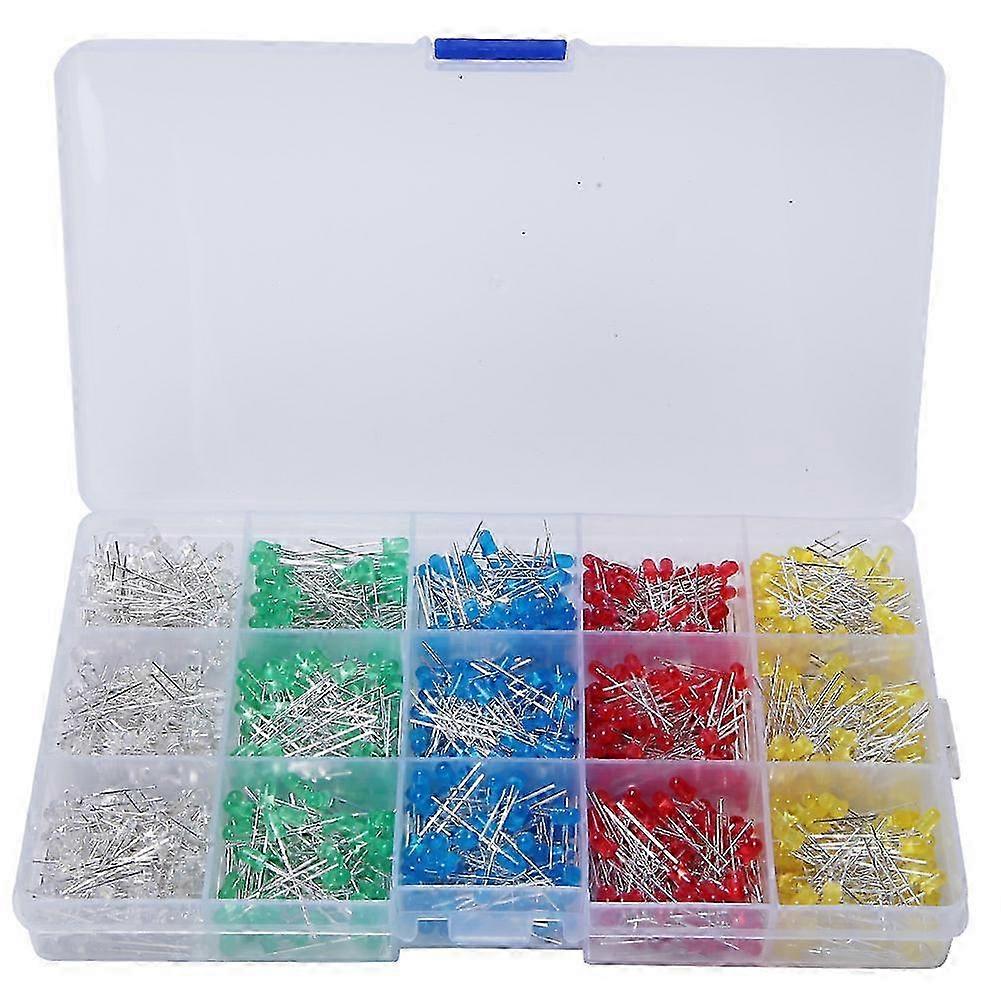 1000Pcs Assorted Color Red/Yellow/Blue/Green/White 3mm LED Light Emitting Diode Kit Box 2025