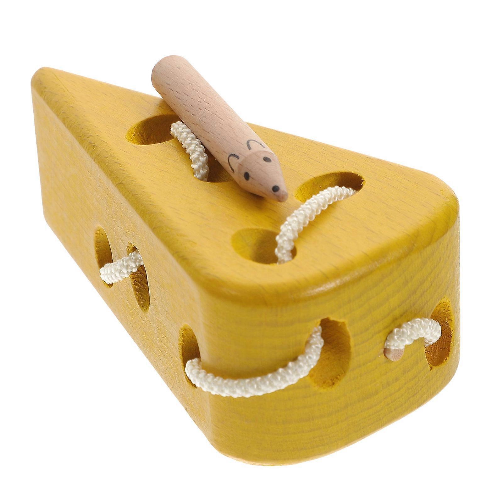 Lacing String Game Cheese Shaped Board Game Playtime Light Yellow Wood Nylon Learning Aid 1 Set