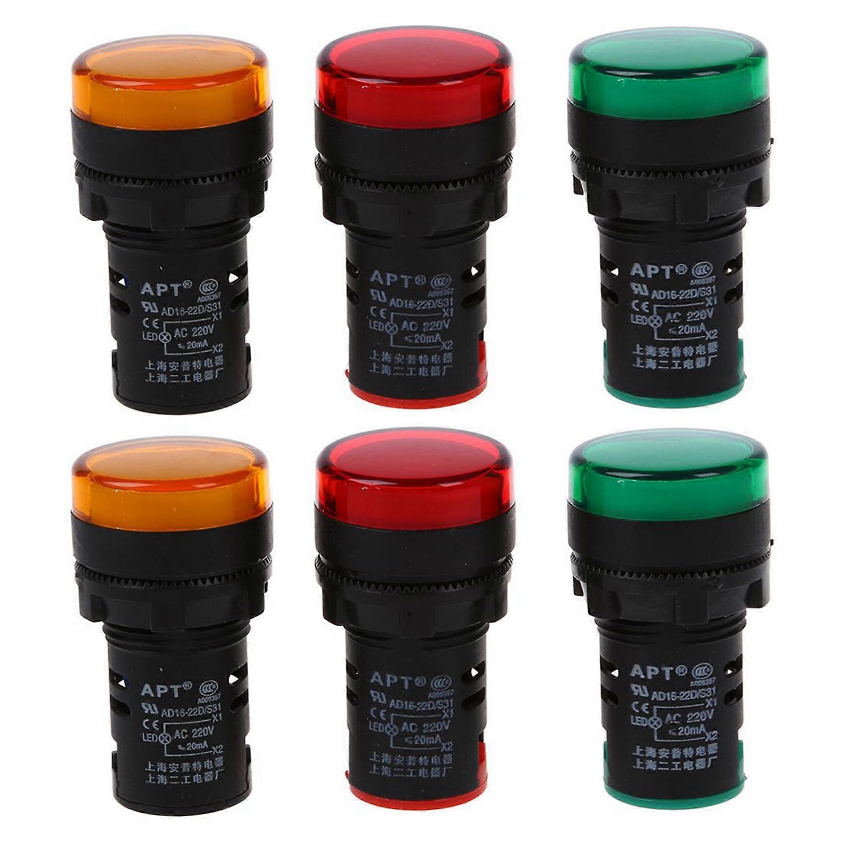 Red, yellow-green light lamp 22 mm LED pilot display panel AC 220 V 6 pcs