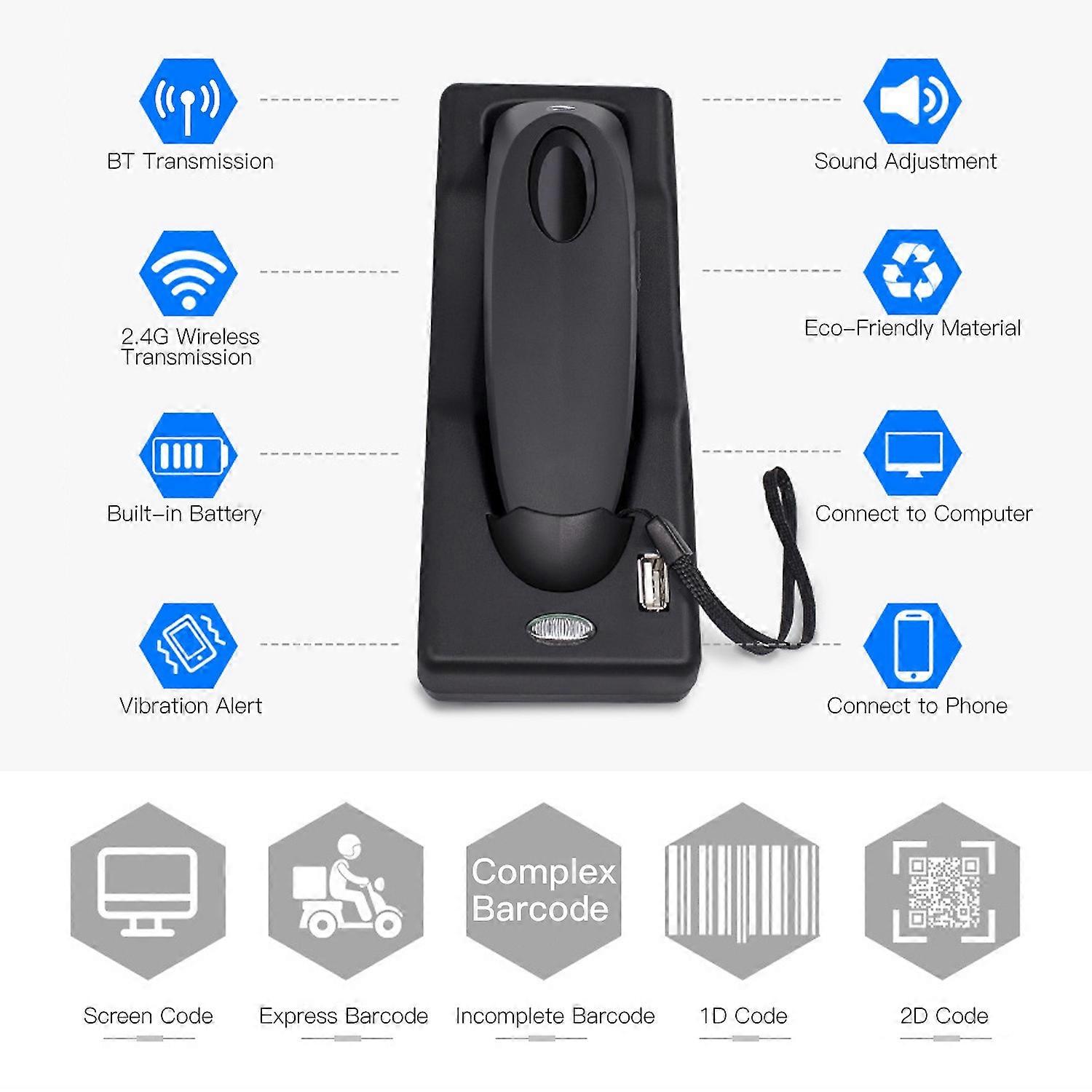 Portable 3-in-1 Barcode Scanner Handheld 1D/2D/QR Bar Code Reader Support BT & 2.4G Wireless & USB W