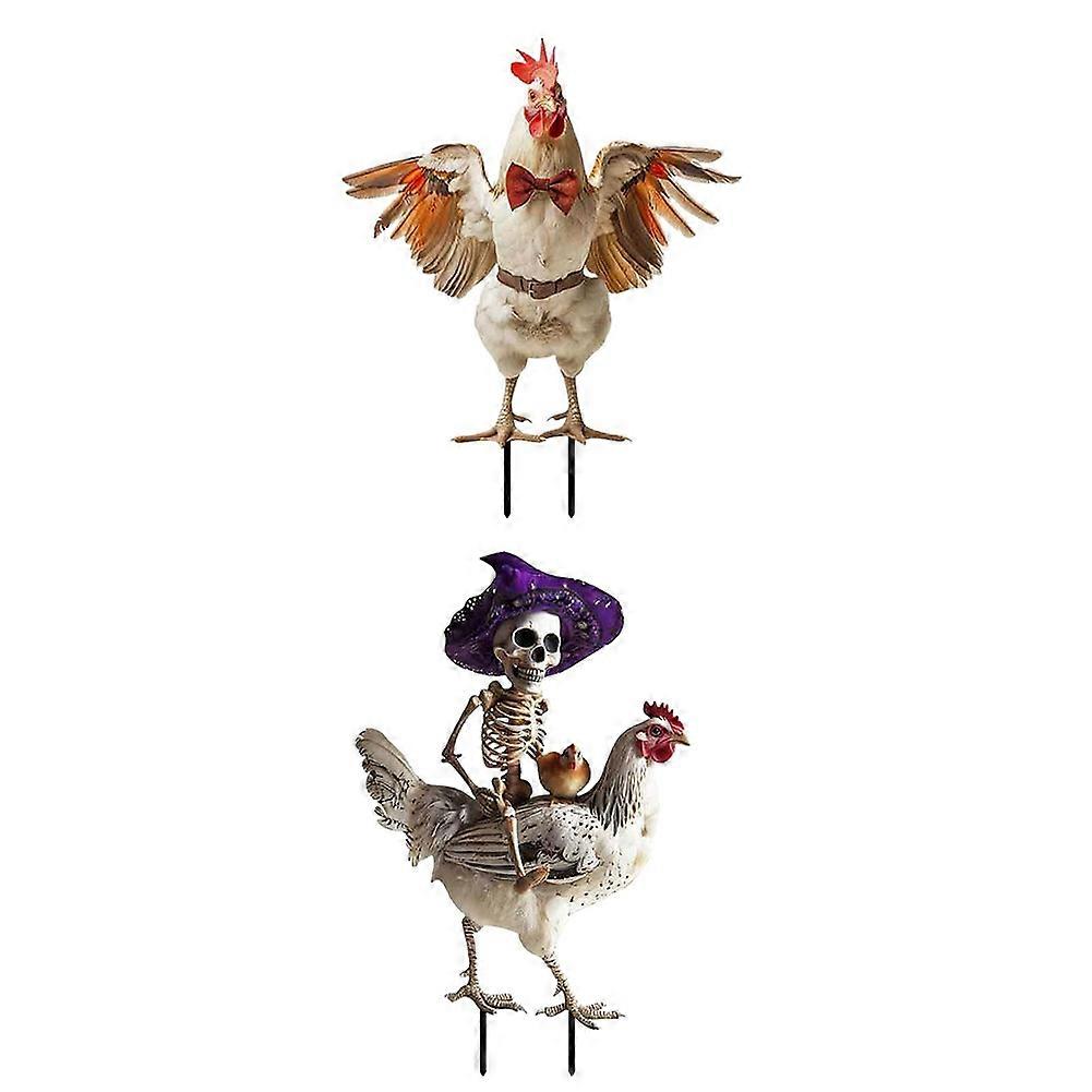 2PCS Halloween Skeleton Riding Rooster Sign Halloween Ornament
