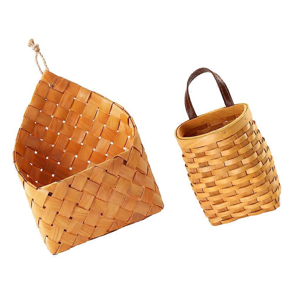 2Pcs Light Yellow Storage Basket for Home Wall Hanging Wooden Basket