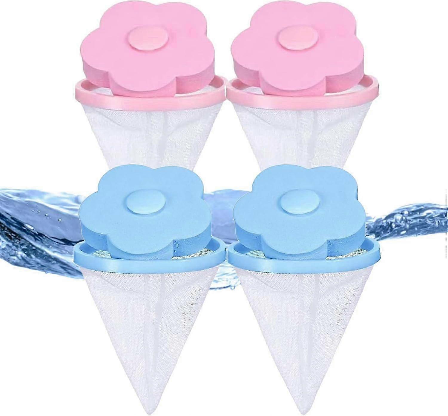 Washing Machine Hair Filter 4pcs Cleaning Mesh Bag Plum-Shaped Reusable Blue Pink Lint Catcher Floating Household