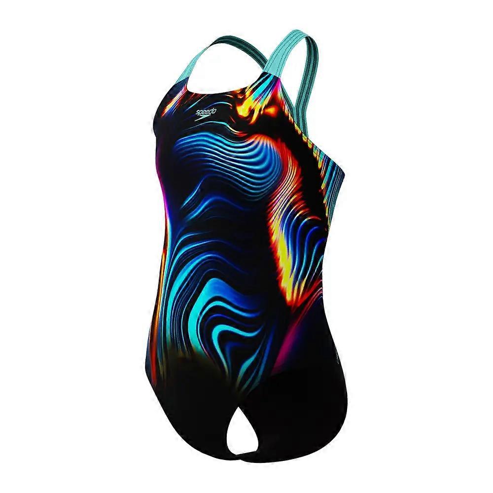 Speedo Girls Digital Placement Powerback Swimsuit - Black/Blue
