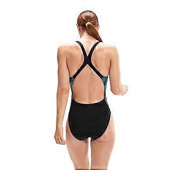 Speedo Allover Digital Powerback Swimsuit - Black/Green
