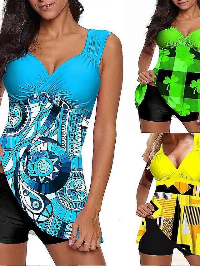 Women's Swimwear Swim Dress Normal Swimsuit 2 Piece Printing Graphic Leaf Yellow Sky Blue Green Bathing Suits Sports Summer