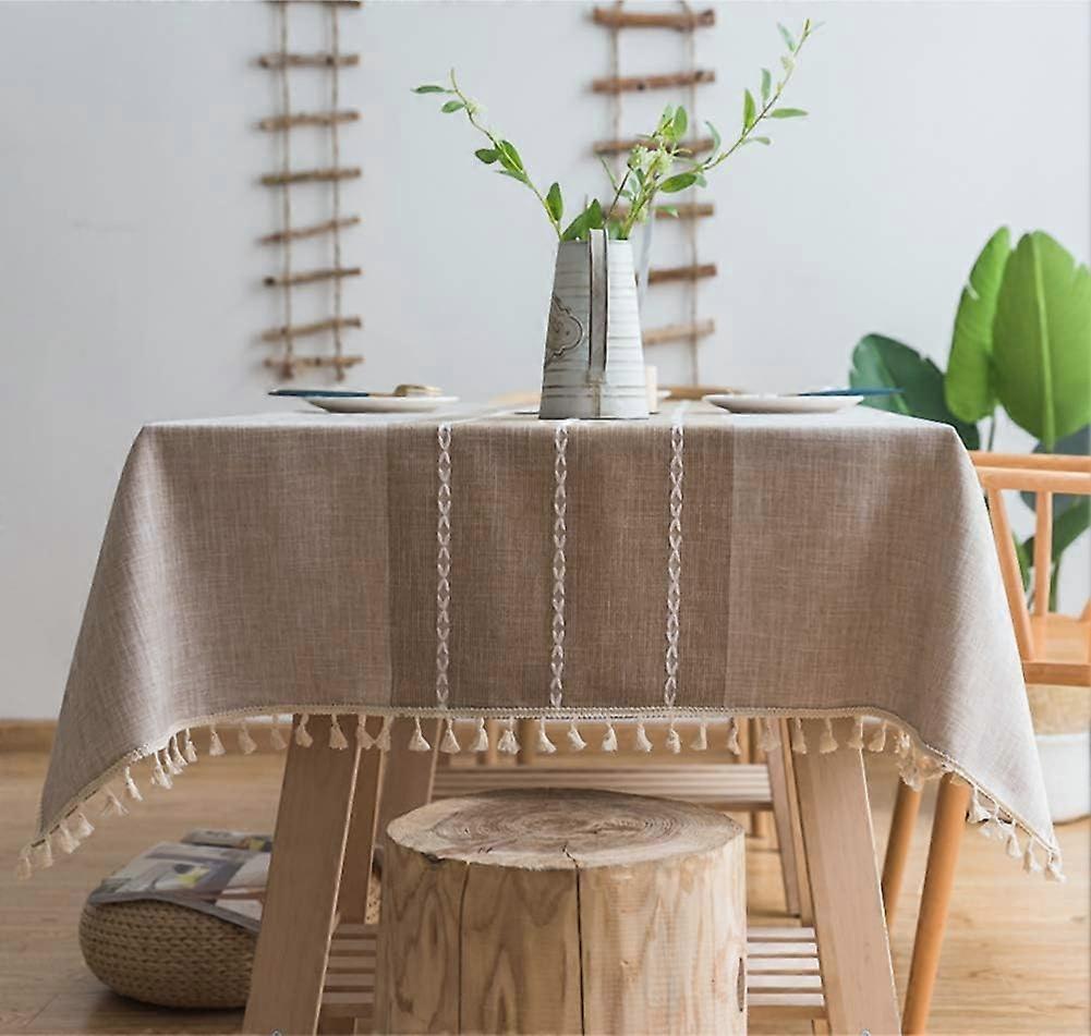 Mantel con borlas, mantel lavable de algodón y lino, mantel gris, mesa de centro rectangular