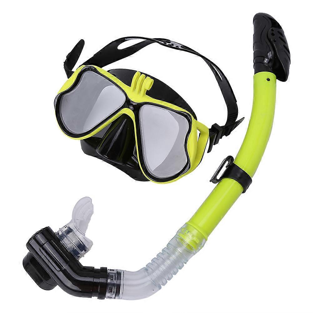 Tempered Glass Diving Mask Full Dry Snorkel Watertight For Swimming (yellow)