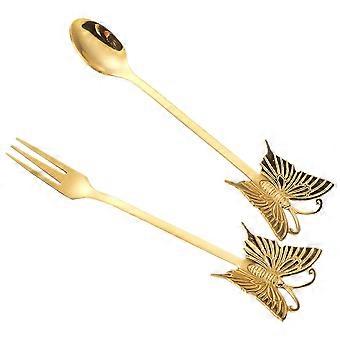 Ensemble de 2 fourchettes et cuillères à dessert en argent, vaisselle portable pour fruits