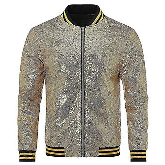 Mens Sequins Casual Zipper Party Bomber Jacket