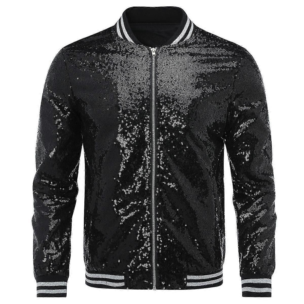 Mens Sequins Casual Zipper Party Bomber Jacket