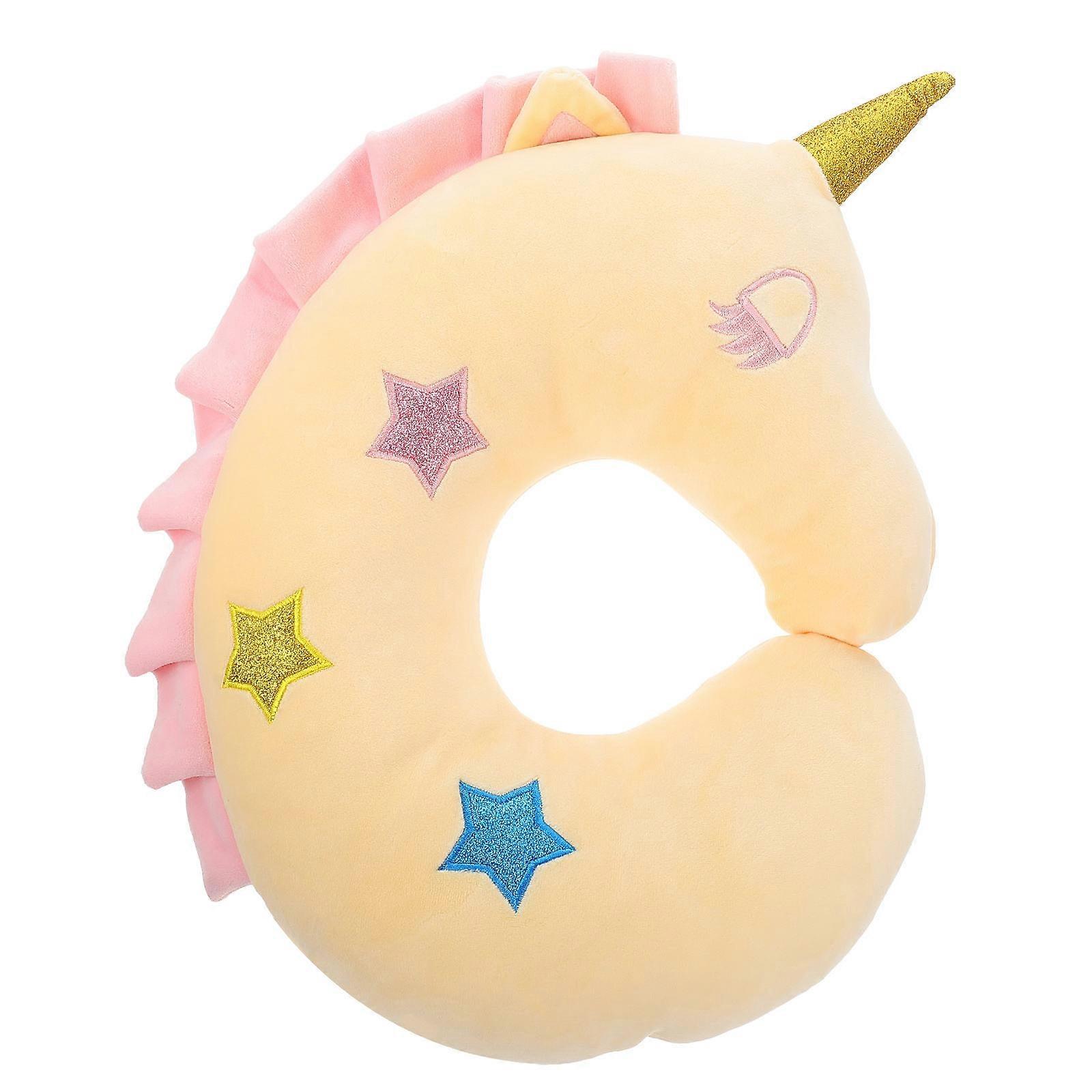 Cute Travel Neck Pillow Unicorn Shape Light Yellow 35X32CM PP Cotton Neck 1Pack