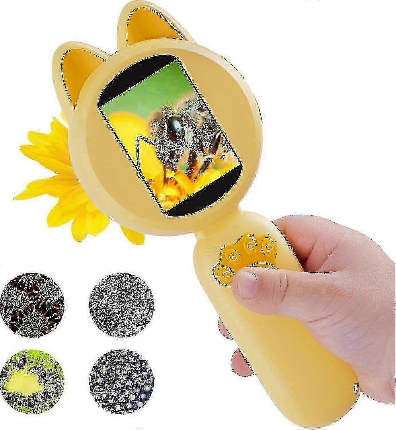 Curiosity-Driven Discovery: The portable microscope brings hidden details to life, encouraging hands-on exploration and discovery. Designed as an entry-level tool for your young scientist, this kids microscope opens up a world of wonders, from the texture of leaves to tiny rock formations, fostering a true curiosity about nature and science.Capture Discoveries with Built-in Memory: Built-in memory stores up to 300 images, making it easy to save memorable discoveries directly on the device. No external TF card or external storage required - just point, capture and view. Photos cannot be transferred to other devices, making it easy for young explorers to use.Clear 2-inch IPS Display and Adjustable LED Lighting: The 2-inch IPS screen provides a vivid display that makes details easy to see, while the surrounding eight LEDs provide three brightness levels to suit a variety of environments. Whether observing in natural daylight or indoors, this mini microscope's adjustable lighting ensures clear viewing every time.