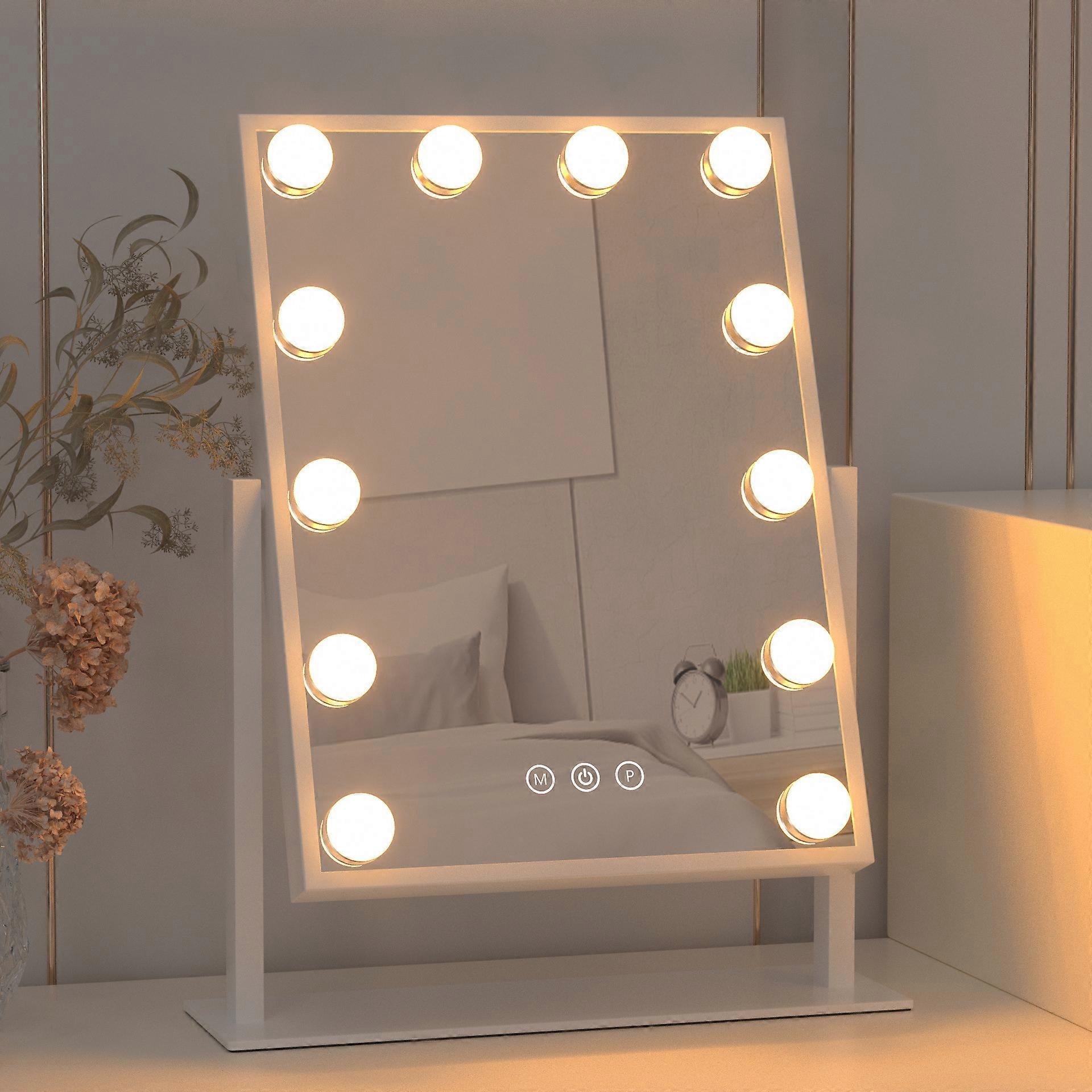 Hollywood Lighted Makeup Mirror with 3 Color Lighting Modes and 12 Dimmable Bulbs, Smart Touch Control, 360Rotation, White