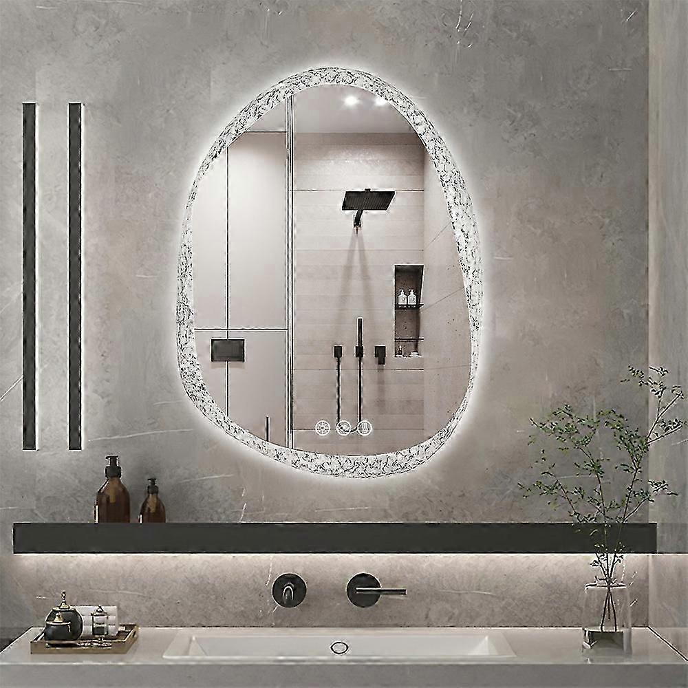 Unique Irregular Large LED Bathroom Mirror Anti-fog Makeup Mirror with 3 Colors Dimmable Backlit Wall Mirror