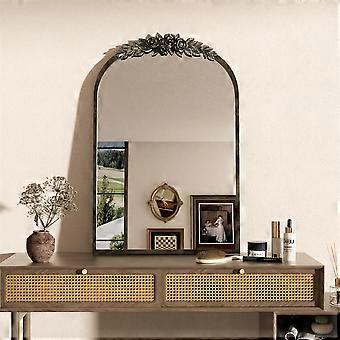 Miroir mural arqué vintage Miroir de courtoisie baroque en laiton Miroir de cheminée sculpté orné