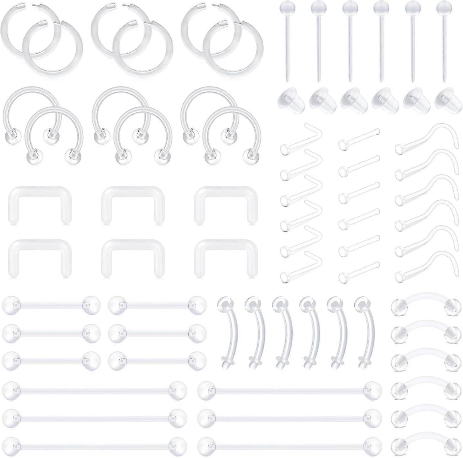 Mix Style Clear Piercing Kit Retainer Flexible Lip Nose Eyebrow Nipple Tongue