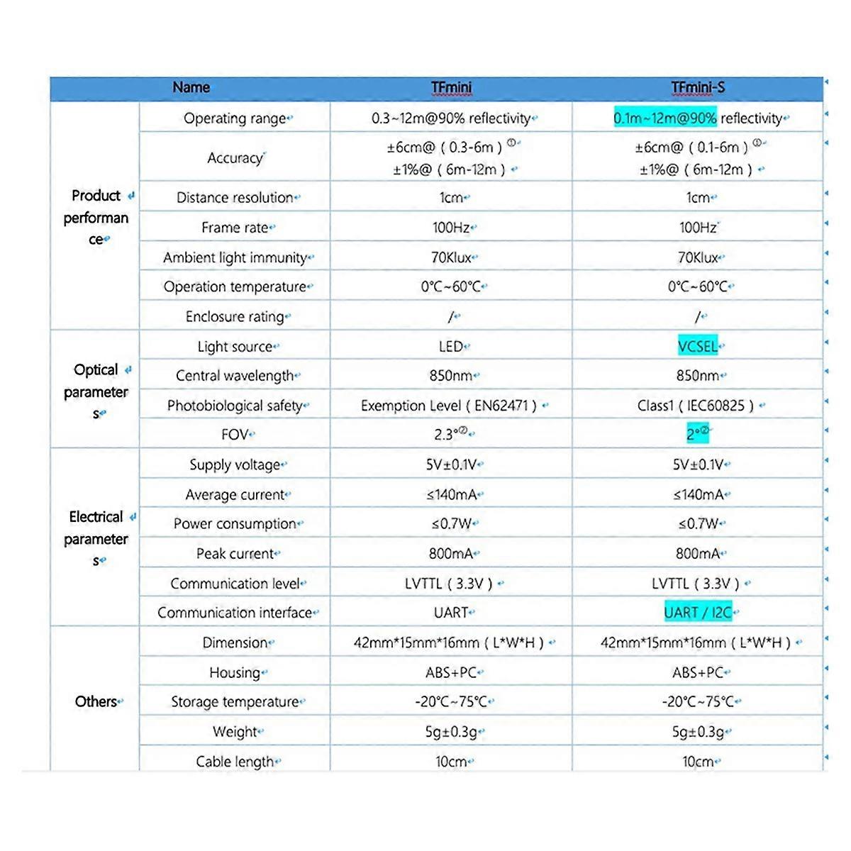 TFmini-S Lidar Single-Point Micro-Type RangingFinder Module for 4.5-6V UART I2C Interface TFminiUpgraded