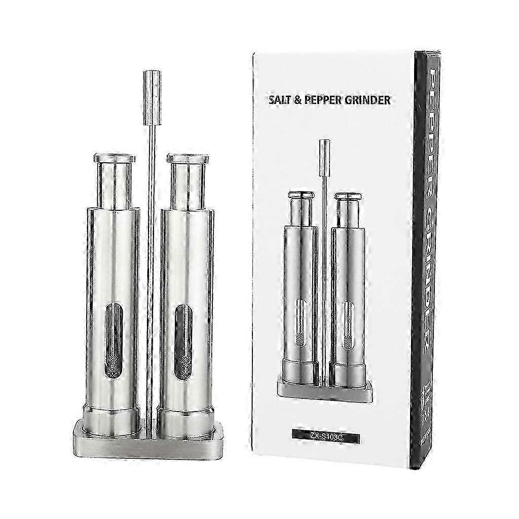 Manual Salt Pepper Grinder Set One-Handed Thumb Push Button With Metal Holder