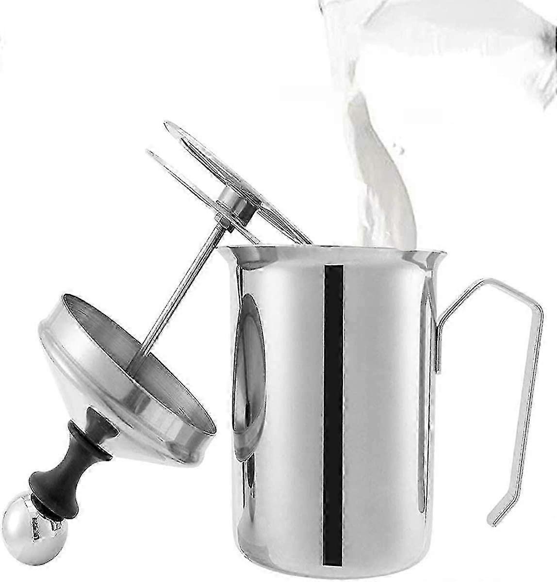 Stainless Steel Double Layer Hand Milk Frother Coffee Foaming Pump (800ml) (santanxing) f74
