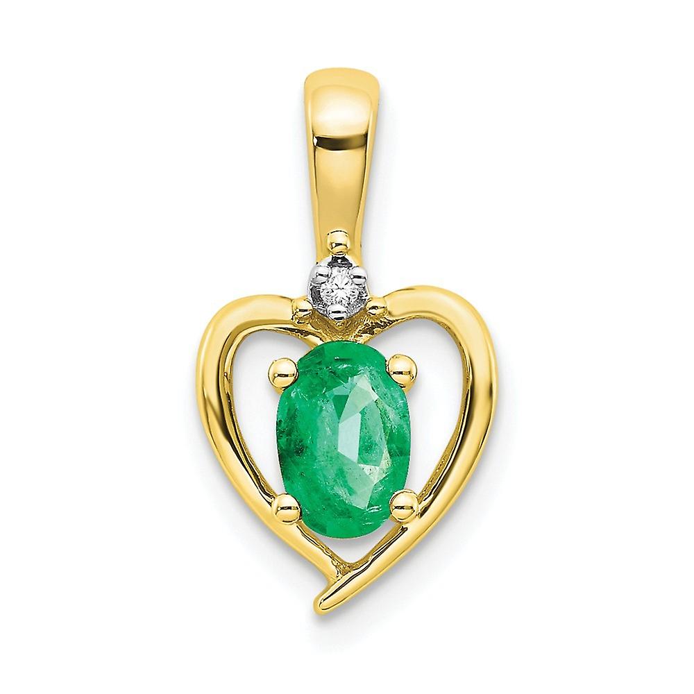 10k Yellow Gold Polished Diamond and Emerald Pendant Necklace-Pendant for Women - .010 dwt .40 cwt