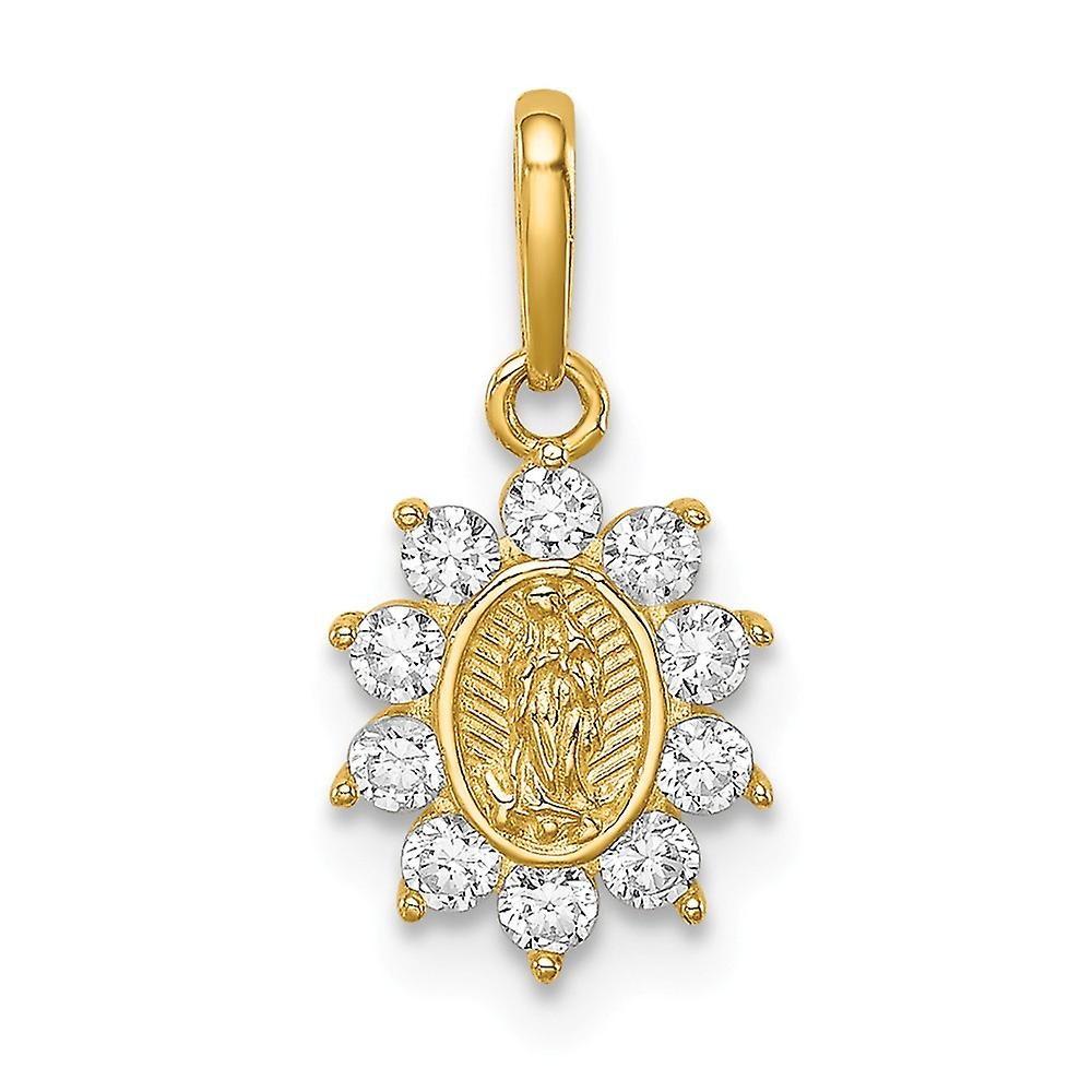 14k Solid Yellow Gold Our Lady Of Guadalupe Cubic Zirconia Pendant Necklace 15.6x8mm Wide-Pendant for Women