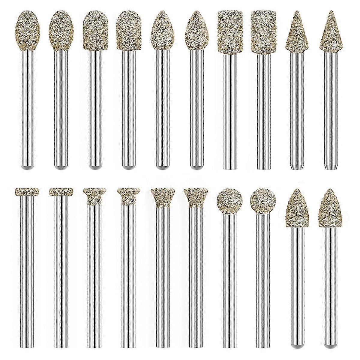 Rotary Tool Accessories Carving Tools 20Pcs Diamond 60 Grit 1/8 Inch Shank Glass EtchingKit Engravin