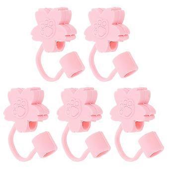 Silicone Straw Tips Cover for Drinking Straw 5Pcs Pink Decorative Caps
