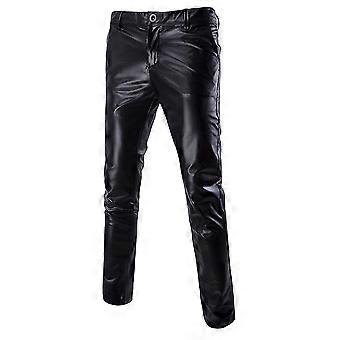 Pantalon en cuir décontracté Bright Bronzing Mid-Waist