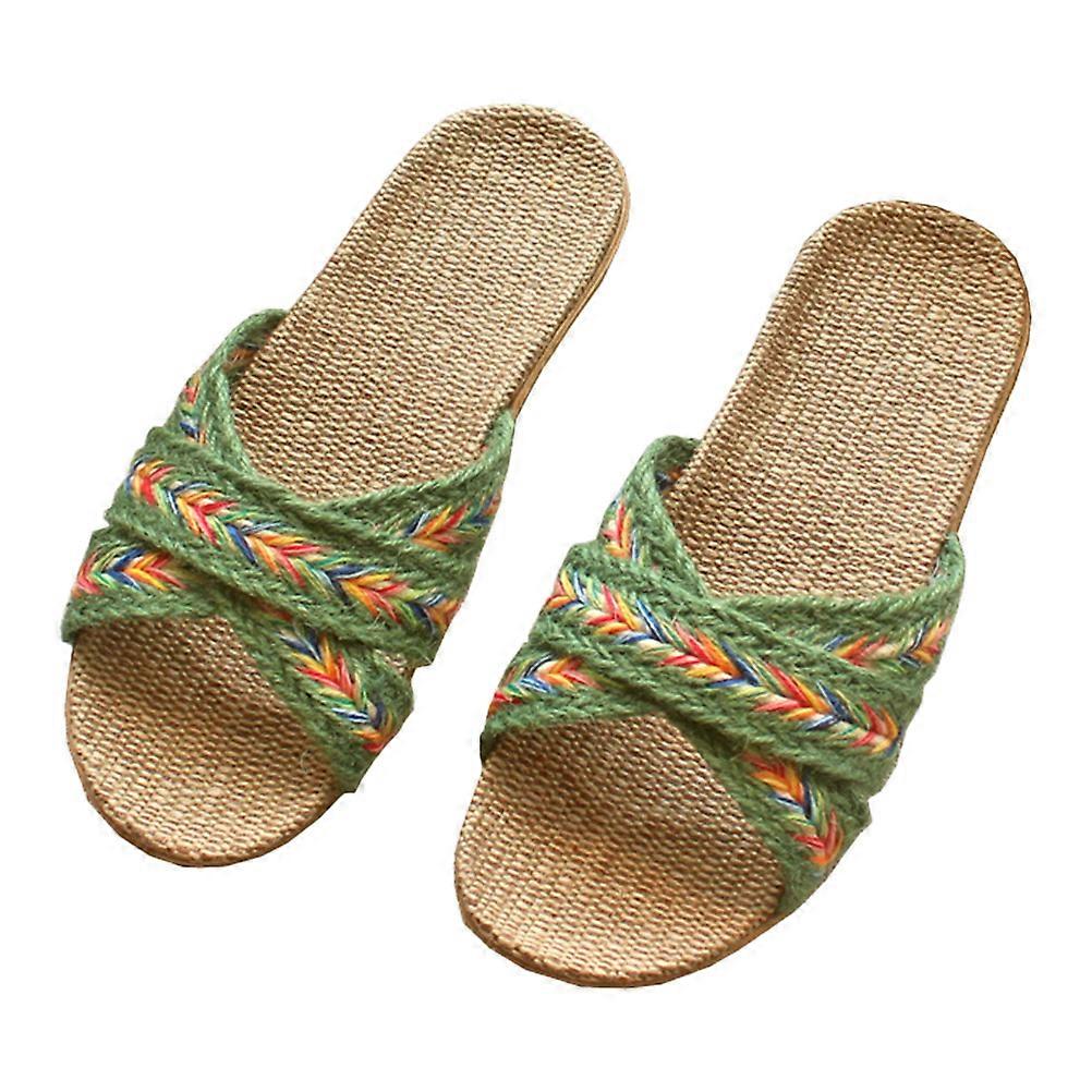Indoor Summer Slippers Made Of Linen Beautiful Design 1 Pair Green