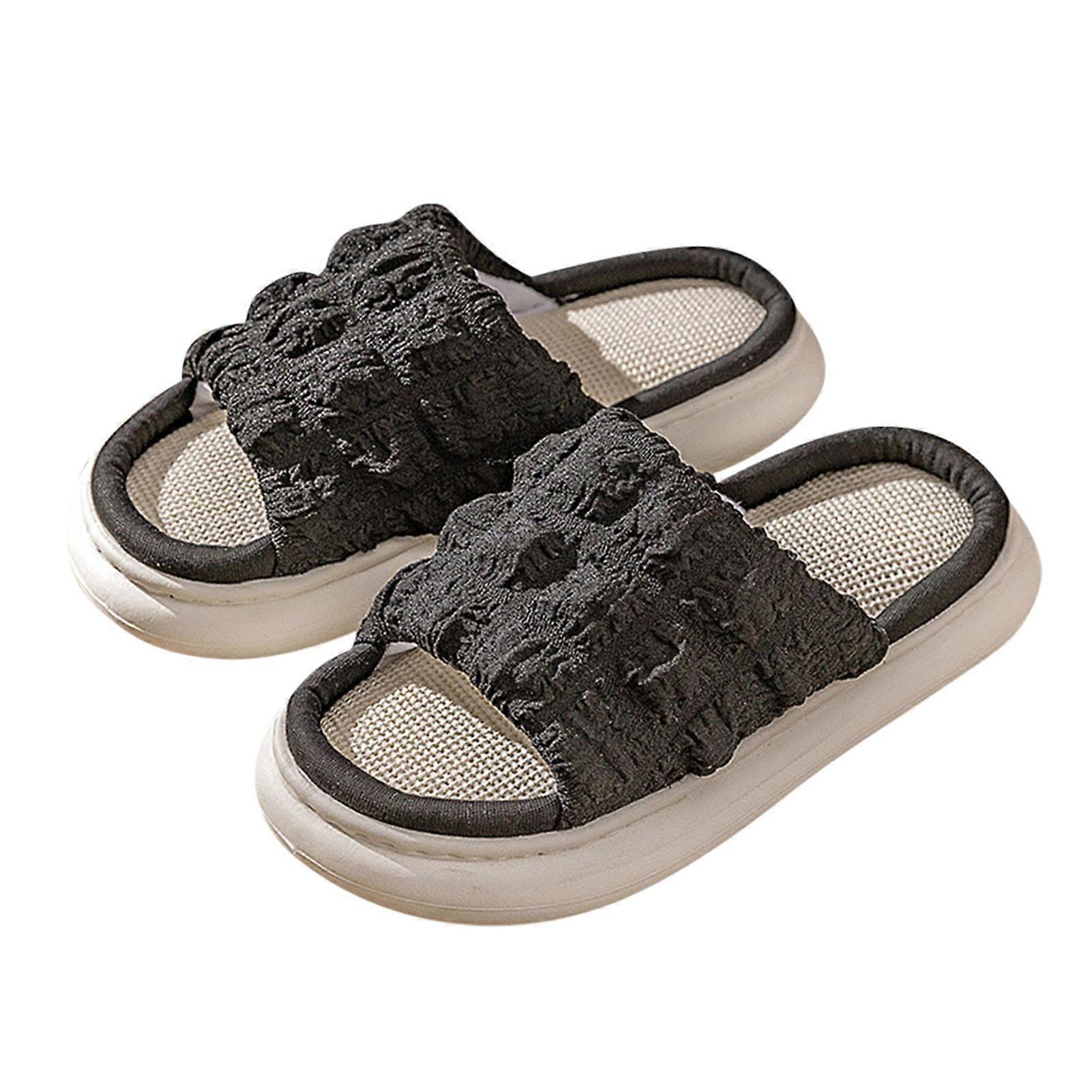 Linen Slippers Soft Thick Bottom Women Mute Non-Slip Indoor Home Sweat-Absorbing