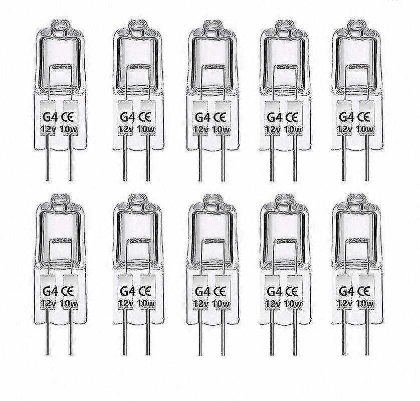 10-Pack Dimmable Halogen Bulbs, 10W 12V G4 Warm White, Clear Capsule Design with 2-Pin Base for Lighting Fixtures