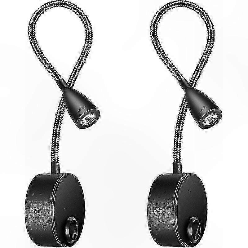 2-Pack LED Gooseneck Wall Lamps, 3W Warm White 3000K Reading Lights, Black Bedside Lighting Solution
