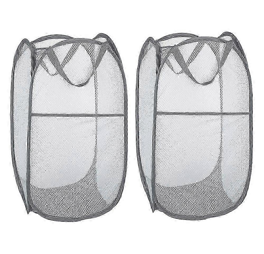 [2 Pack] Collapsible Pop Up Mesh Laundry Bins Laundry Bag Collapsible Laundry Hamper with Handle, Gray