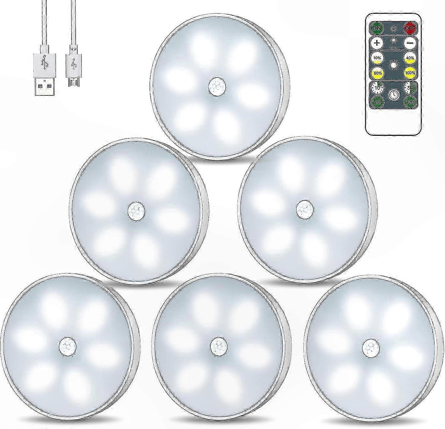 USB Rechargeable LED Closet Light 6 Pack, Wireless Touch Control Cabinet Lamp with Remote Dimmable Brightness Night Lighting Solution